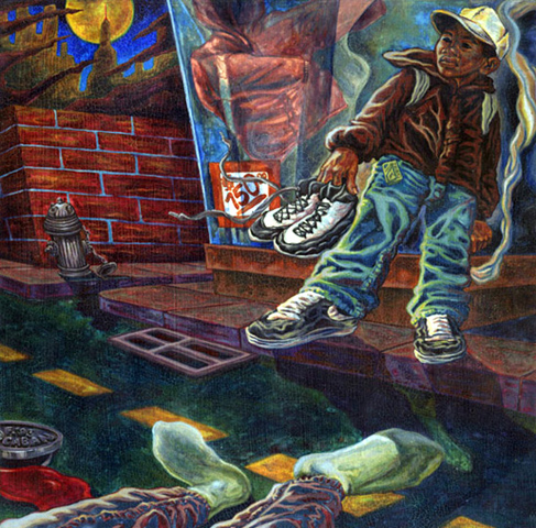 Please don’t steal my sneakers! • acrylics • gouache