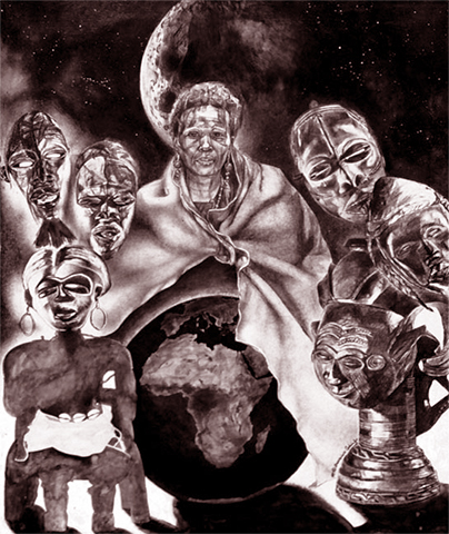 African Ancestors (5' x 4') acrylics • charcoal pencil